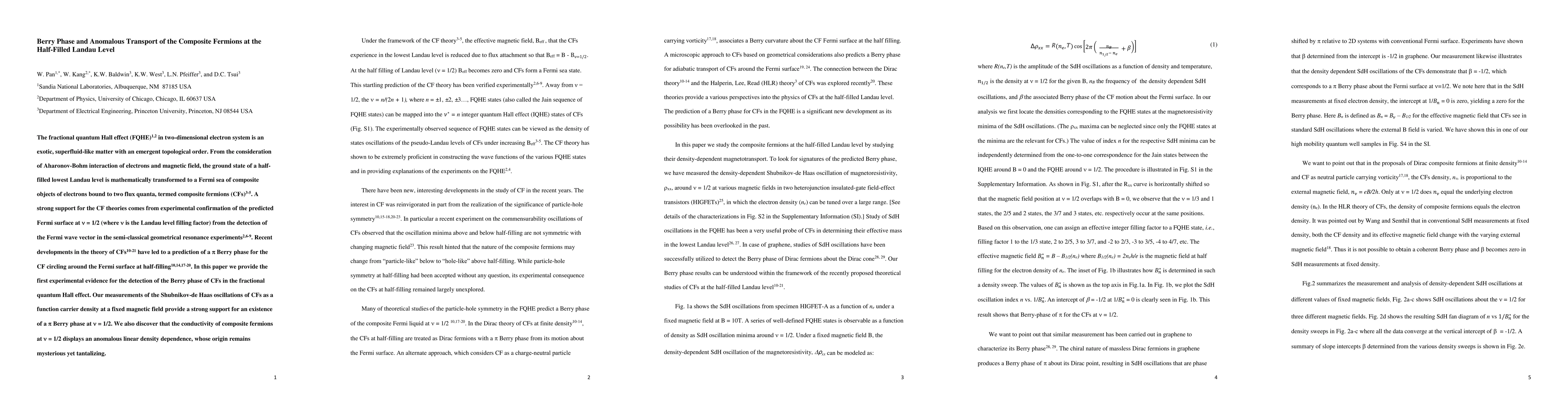 This paper experimentally confirms the existence of a $\pi$ Berry phase for composite fermions at the half-filled Landau level in the fractional quantum Hall effect, providing strong support for composite fermion theory. Additionally, it reveals an anomalous linear density dependence in the conductivity of composite fermions at $\nu$ = 1/2, suggesting intriguing yet unexplained transport phenomena.