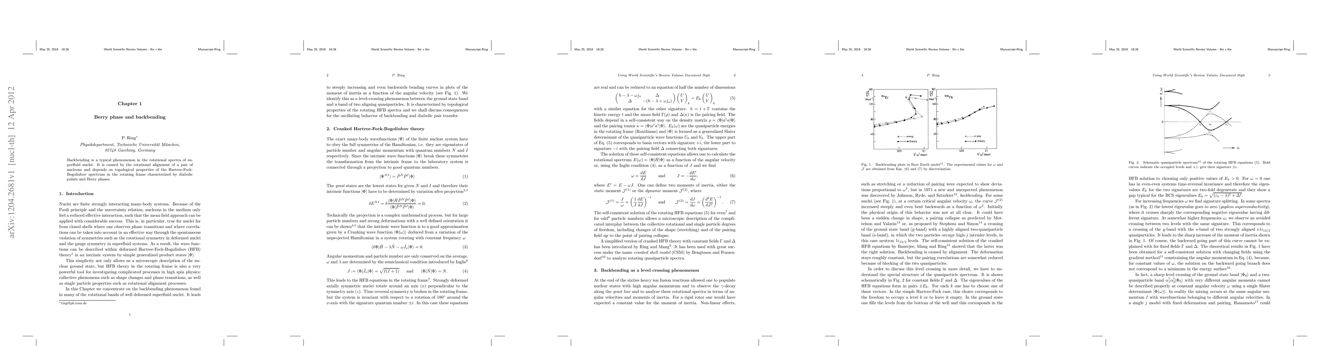 Backbending is a typical phenomenon in the rotational spectra of superfluid nuclei. It is caused by the rotational alignment of a pair of nucleons and depends on topological properties of the Hartree-Fock-Bogoliubov spectrum in the rotating frame characterized by diabolic points and Berry phases.