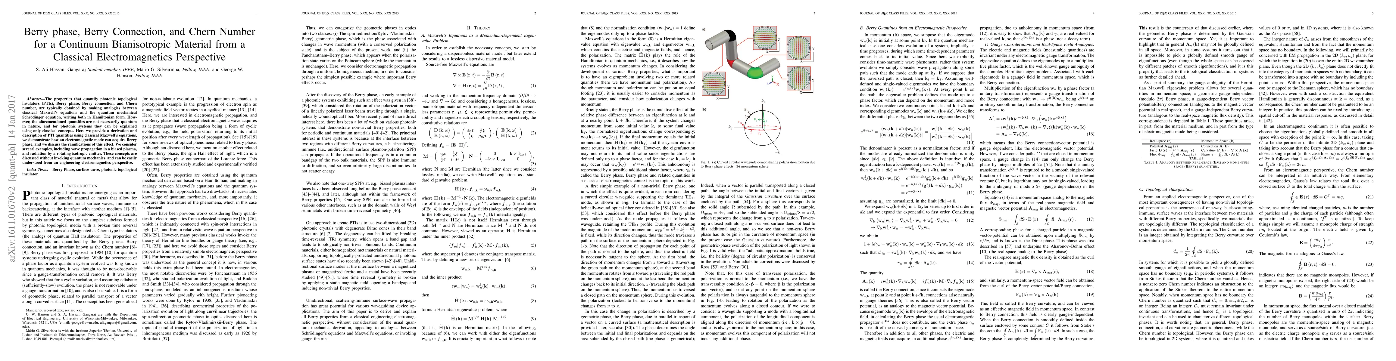 The properties that quantify photonic topological insulators (PTIs), Berry phase, Berry connection, and Chern number, are typically obtained by making analogies between classical Maxwell's equations and the quantum mechanical Schr\"{o}dinger equation, writing both in Hamiltonian form. However, the aforementioned quantities are not necessarily quantum in nature, and for photonic systems they can be explained using only classical concepts. Here we provide a derivation and description of PTI quantities using classical Maxwell's equations, we demonstrate how an electromagnetic mode can acquire Berry phase, and we discuss the ramifications of this effect. We consider several examples, including wave propagation in a biased plasma, and radiation by a rotating isotropic emitter. These concepts are discussed without invoking quantum mechanics, and can be easily understood from an engineering electromagnetics perspective.