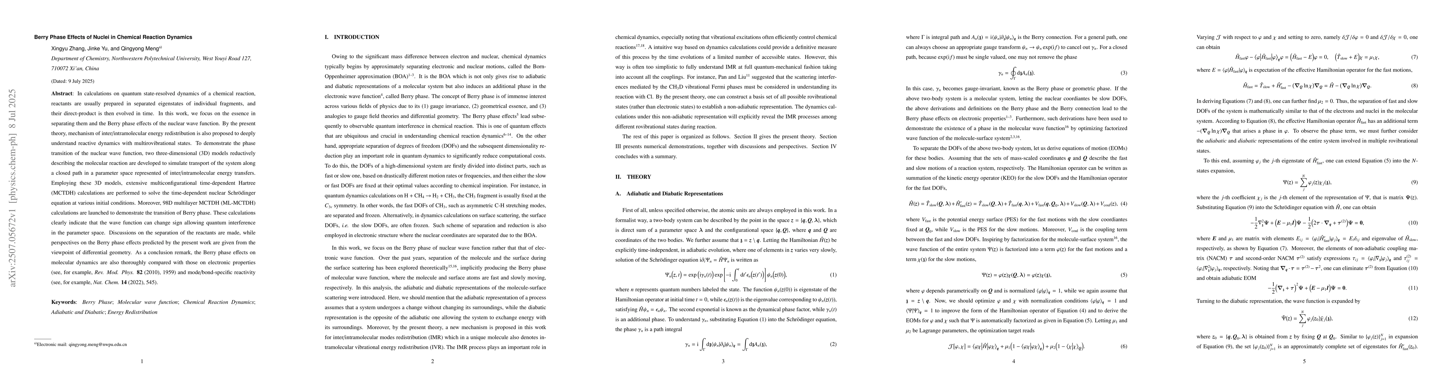 In calculations on quantum state-resolved dynamics of a chemical reaction, reactants are usually prepared in separated eigenstates of individual fragments, and their direct-product is then evolved in time. In this work, we focus on the essence in separating them and the Berry phase effects of the nuclear wave function. By the present theory, mechanism of inter/intramolecular energy redistribution is also proposed to deeply understand reactive dynamics with multirovibrational states. To demonstrate the phase transition of the nuclear wave function, two three-dimensional (3D) models reductively describing the molecular reaction are developed to simulate transport of the system along a closed path in a parameter space represented of inter/intramolecular energy transfers. Employing these 3D models, extensive multiconfigurational time-dependent Hartree (MCTDH) calculations are performed to solve the time-dependent nuclear Schr{\"o}dinger equation at various initial conditions. Moreover, 98D multilayer MCTDH (ML-MCTDH) calculations are launched to demonstrate the transition of Berry phase. These calculations clearly indicate that the wave function can change sign allowing quantum interference in the parameter space. Discussions on the separation of the reactants are made, while perspectives on the Berry phase effects predicted by the present work are given from the viewpoint of differential geometry. As a conclusion remark, the Berry phase effects on molecular dynamics are also thoroughly compared with those on electronic properties (see, for example, {\it Rev. Mod. Phys.} {\bf 82} (2010), 1959) and mode/bond-specific reactivity (see, for example, {\it Nat. Chem.} {\bf 14} (2022), 545).