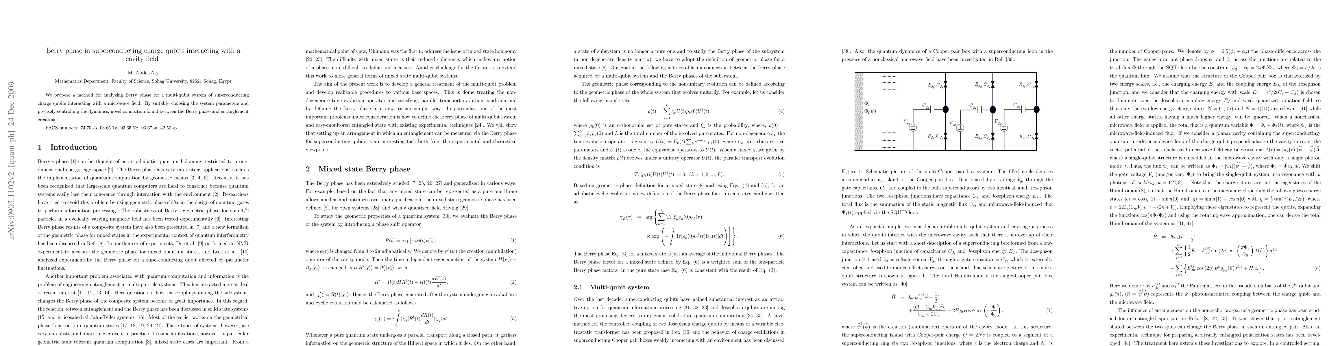 This paper proposes a method to analyze the Berry phase in a multi-qubit system of superconducting charge qubits interacting with a cavity microwave field. It reveals a novel link between the Berry phase and the creation of entanglement by carefully selecting system parameters and controlling dynamics.