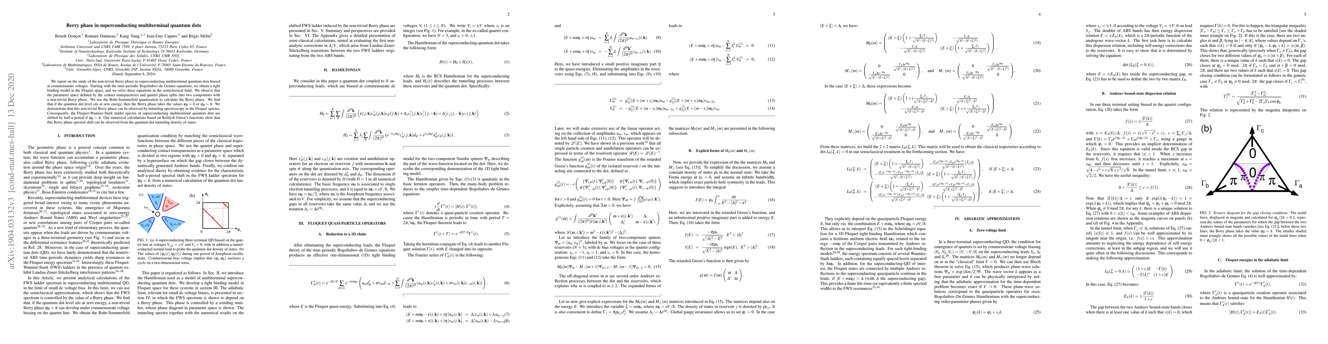 This paper investigates the non-trivial Berry phase in superconducting multiterminal quantum dots under periodic bias, revealing a parameter space split into two components with Berry phase values of $\varphi_B=0$ or $\varphi_B=\pi$. The study demonstrates that this phase shift can be detected via tunneling spectroscopy in the Floquet spectra.