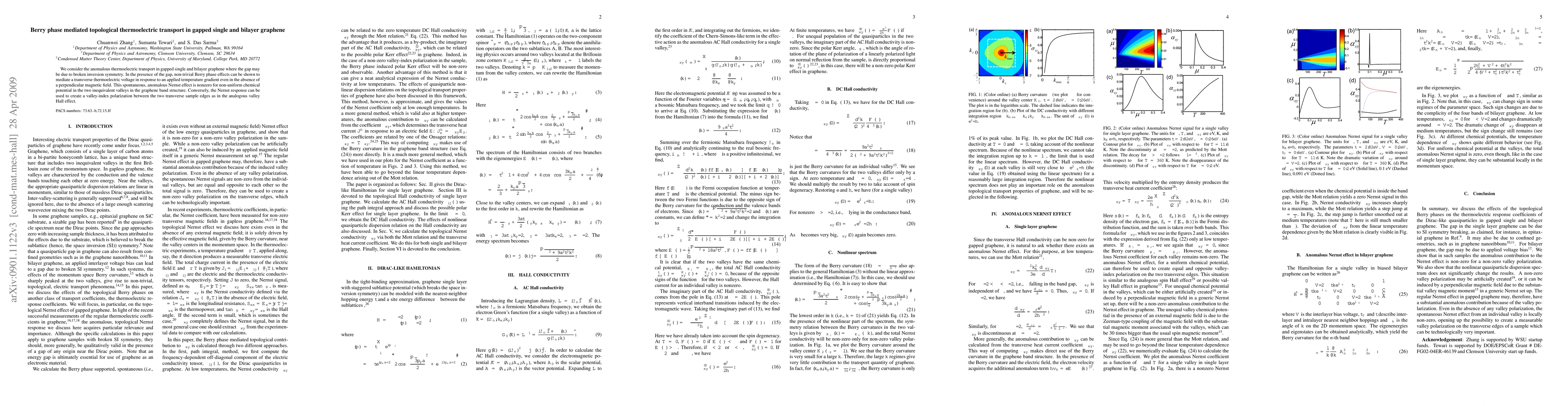 This paper explores how non-trivial Berry phase effects in gapped single and bilayer graphene can induce a transverse thermoelectric voltage without a magnetic field, leading to a spontaneous anomalous Nernst effect, and discusses its implications for valley-index polarization.