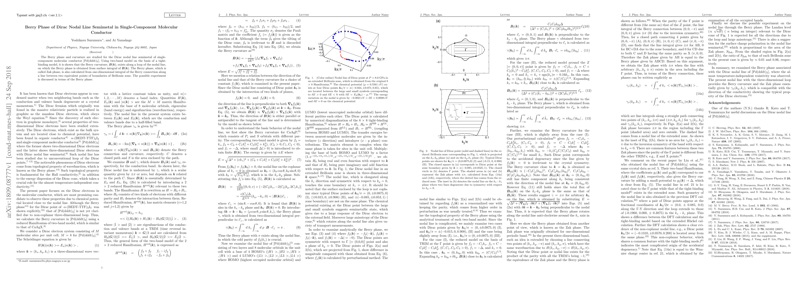This paper studies the Berry phase and curvature in the Dirac nodal line semimetal of the single-component molecular conductor [Pd(dddt)$_2$]. It reveals the existence of Berry curvature along a nodal line loop and derives the Zak phase through surface and line integrals, proposing potential experimental verification.