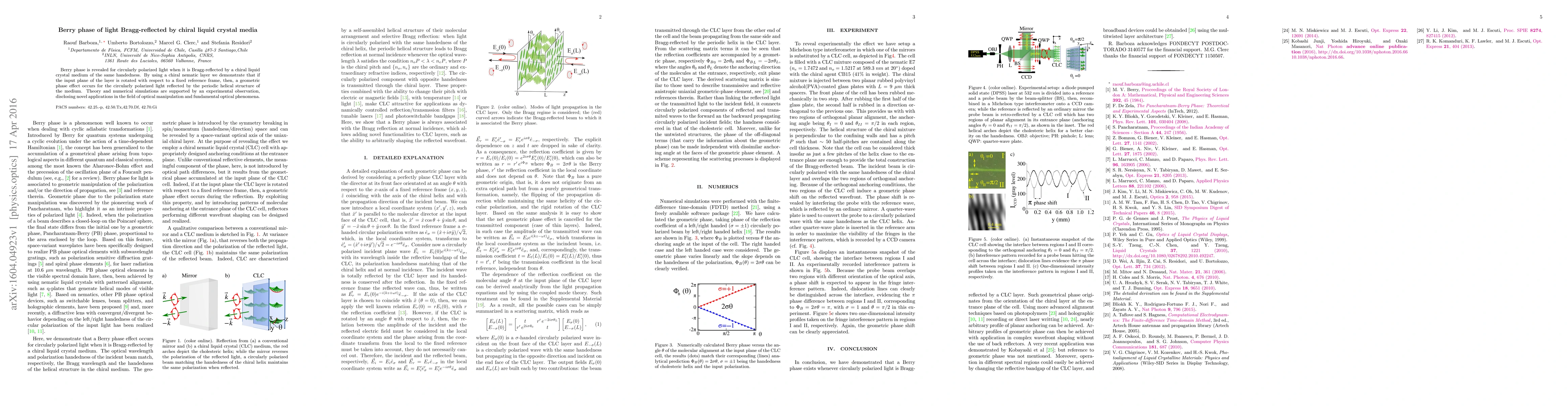 This paper demonstrates the Berry phase effect for circularly polarized light Bragg-reflected by a chiral nematic liquid crystal medium. The study reveals a geometric phase shift when the input plane is rotated, supported by theory, simulations, and experiments, with potential applications in optical manipulation.
