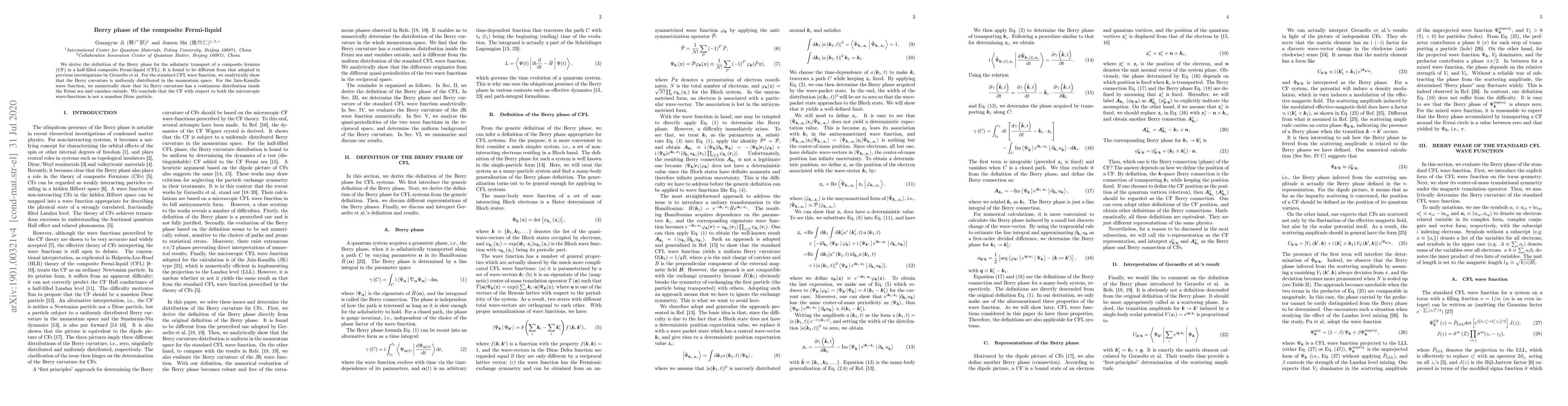 The study finds that composite fermions in composite Fermi-liquids do not behave like massless Dirac particles, with non-uniform Berry phases depending on the wave function used.
