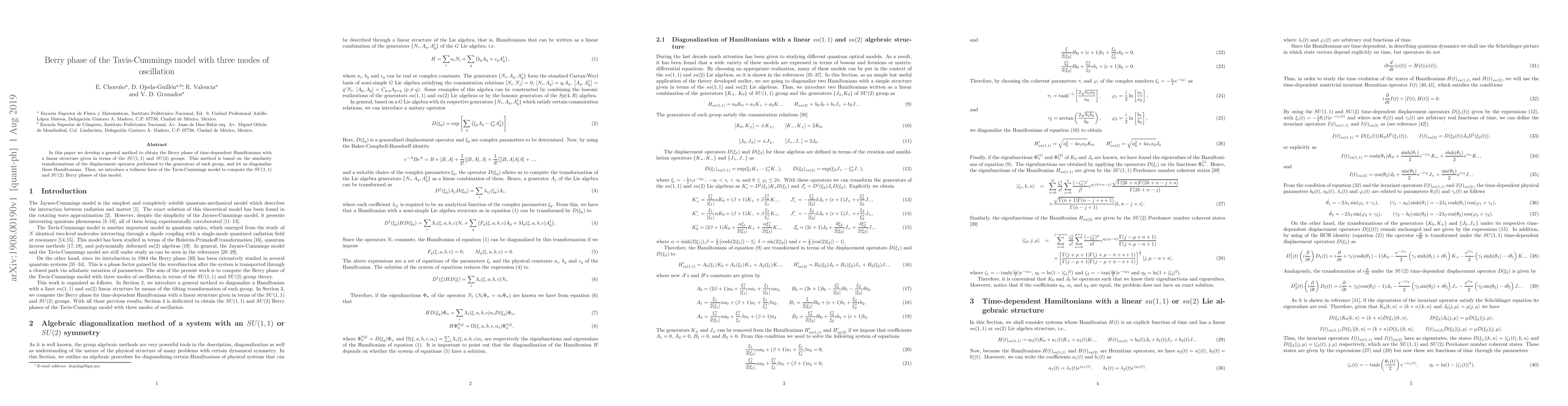This paper develops a method to calculate the Berry phase of time-dependent Hamiltonians with a linear structure using SU(1,1) and SU(2) groups, focusing on the Tavis-Cummings model.