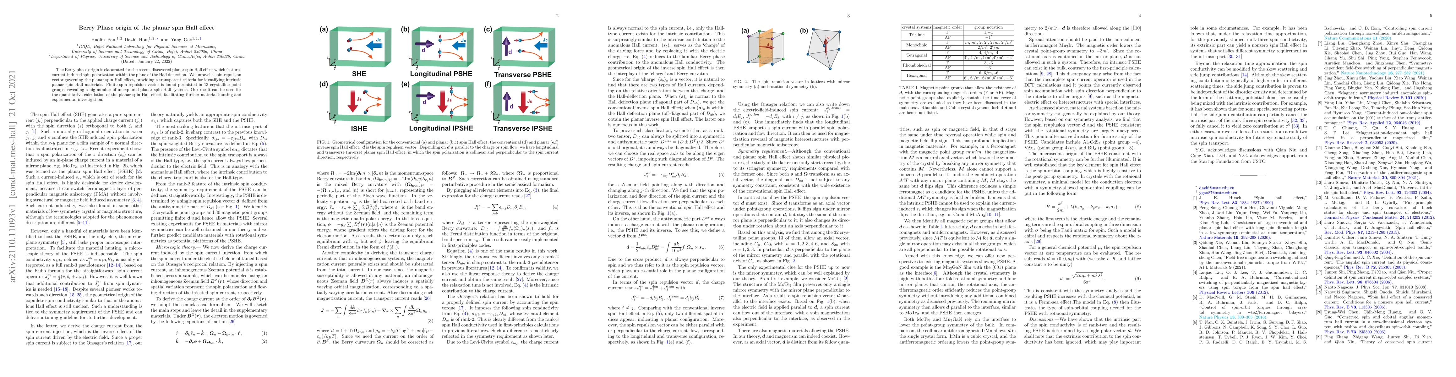 The study reveals that the planar spin Hall effect originates from Berry phase effects, proposing a spin-repulsion vector to identify intrinsic planar spin Hall materials, and highlights 13 crystalline point groups where this effect is permitted, suggesting numerous unexplored materials.