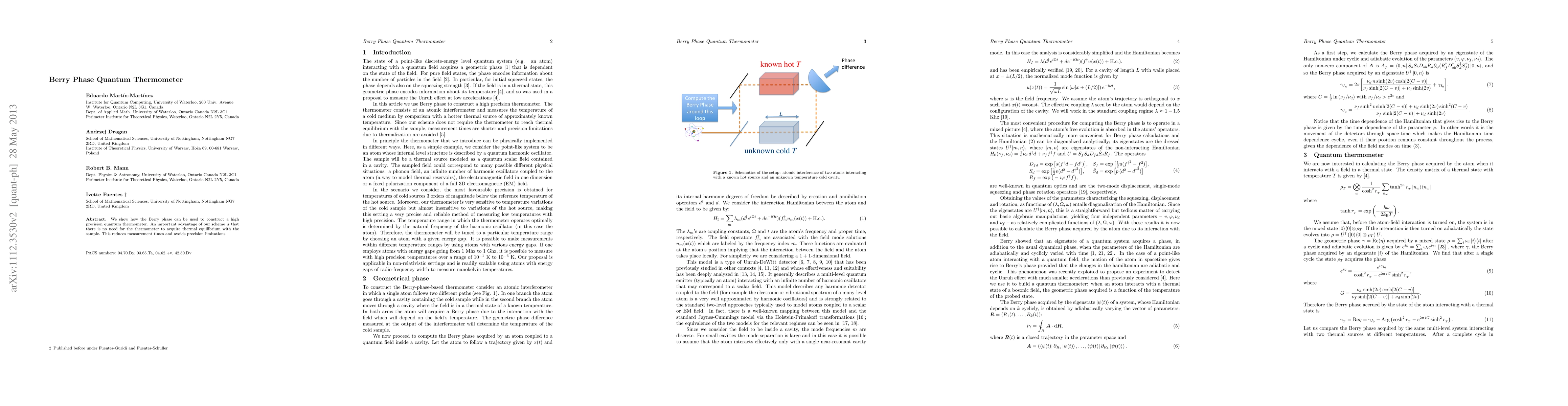 Summary: This paper proposes a novel ultra-high precision quantum thermometer utilizing Berry phase, which eliminates the need for thermal equilibrium between the thermometer and the sample, thereby reducing measurement times and enhancing precision.