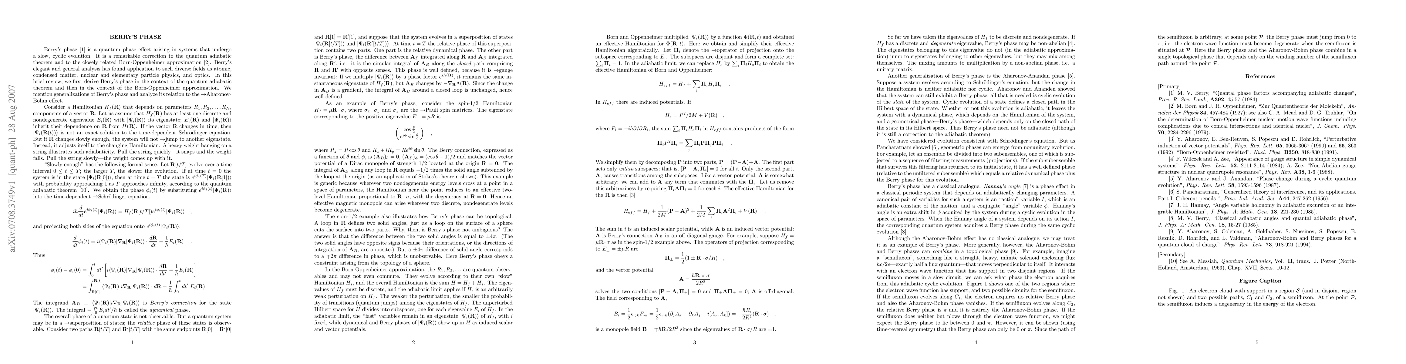 The paper provides a comprehensive explanation of Berry's phase, its mathematical foundations, and its significance in quantum mechanics, including the derivation of the effective Hamiltonian in the Born-Oppenheimer approximation.