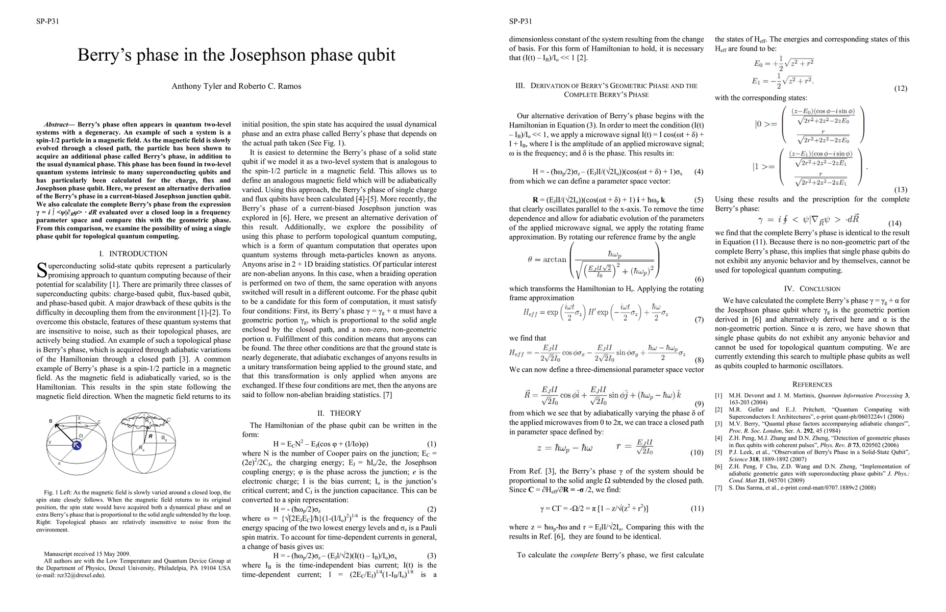 This paper derives Berry's phase in a current-biased Josephson junction qubit and evaluates it over a closed loop in frequency parameter space, comparing it with the geometric phase to explore the potential for using a phase qubit in topological quantum computing.