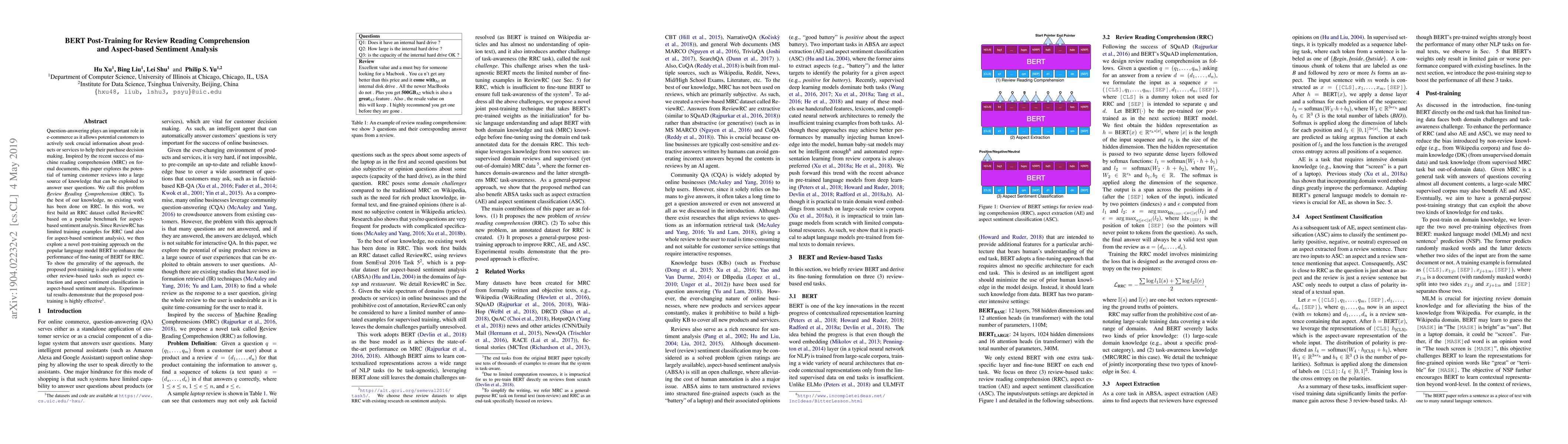 This paper introduces a novel Review Reading Comprehension (RRC) dataset and explores post-training methods for BERT to improve performance on RRC and related aspect-based sentiment analysis tasks. Experimental results show significant effectiveness of the proposed post-training approach.