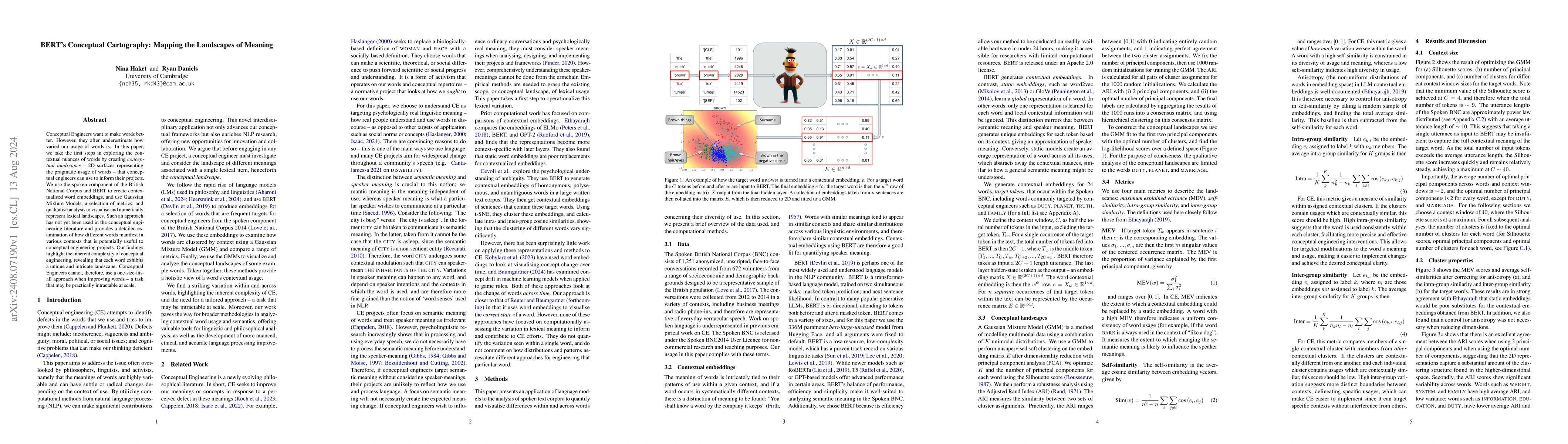 This paper introduces a novel method using BERT and the British National Corpus to create "conceptual landscapes" that visualize the nuanced contexts in which words are used, suggesting that conceptual engineering requires context-specific approaches rather than a universal strategy.