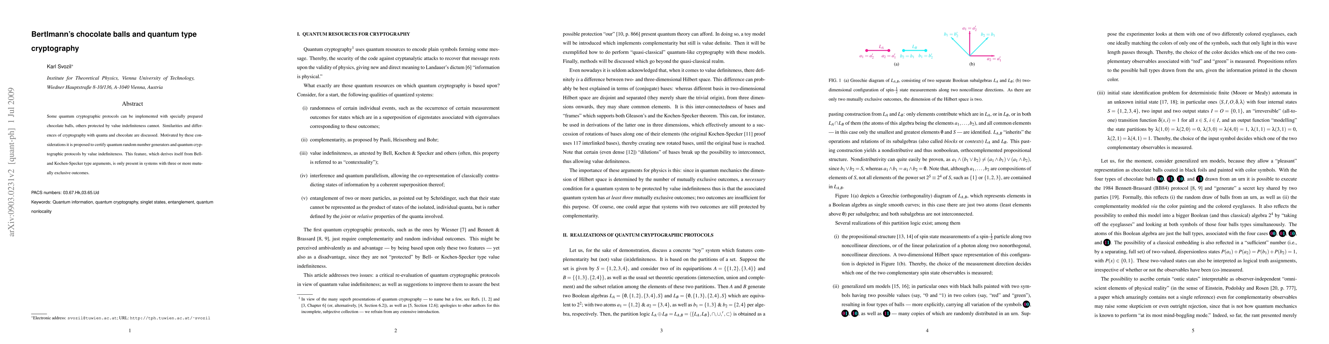Some quantum cryptographic protocols can be implemented with specially prepared chocolate balls, others protected by value indefiniteness cannot. Similarities and differences of cryptography with quanta and chocolate are discussed. Motivated by these considerations it is proposed to certify quantum random number generators and quantum cryptographic protocols by value indefiniteness. This feature, which derives itself from Bell- and Kochen-Specker type arguments, is only present in systems with three or more mutually exclusive outcomes.