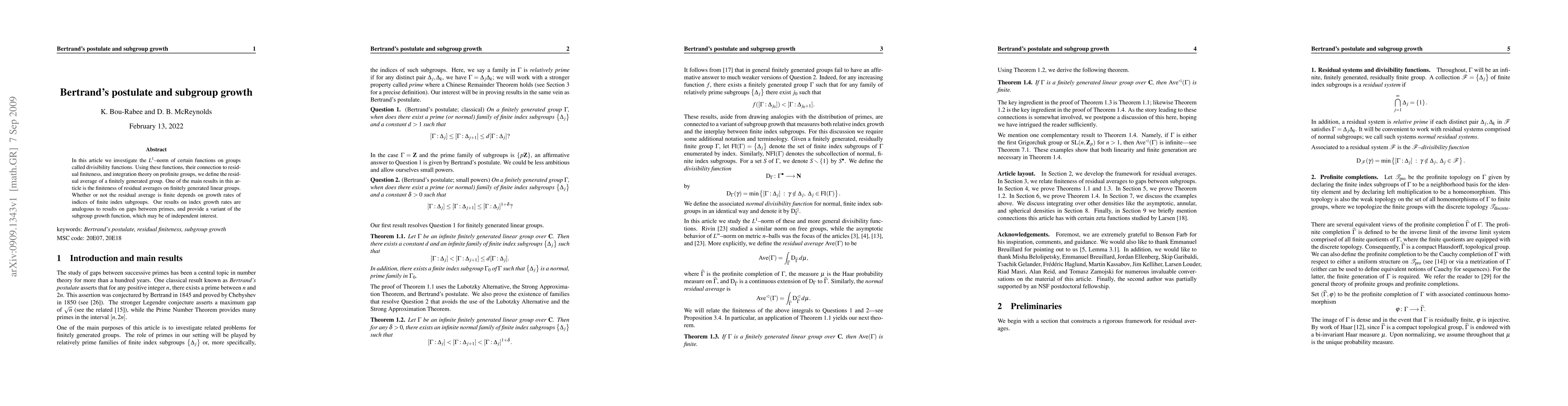In this article we investigate the L^1-norm of certain functions on groups called divisibility functions. Using these functions, their connection to residual finiteness, and integration theory on profinite groups, we define the residual average of a finitely generated group. One of the main results in this article is the finiteness of residual averages on finitely generated linear groups. Whether or not the residual average is finite depends on growth rates of indices of finite index subgroups. Our results on index growth rates are analogous to results on gaps between primes, and provide a variant of the subgroup growth function, which may be of independent interest.