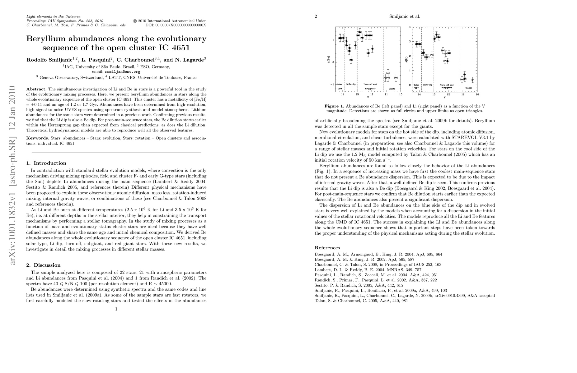 The simultaneous investigation of Li and Be in stars is a powerful tool in the study of the evolutionary mixing processes. Here, we present beryllium abundances in stars along the whole evolutionary sequence of the open cluster IC 4651. This cluster has a metallicity of [Fe/H] = +0.11 and an age of 1.2 or 1.7 Gyr. Abundances have been determined from high-resolution, high signal-to-noise UVES spectra using spectrum synthesis and model atmospheres. Lithium abundances for the same stars were determined in a previous work. Confirming previous results, we find that the Li dip is also a Be dip. For post-main-sequence stars, the Be dilution starts earlier within the Hertzsprung gap than expected from classical predictions, as does the Li dilution. Theoretical hydrodynamical models are able to reproduce well all the observed features.