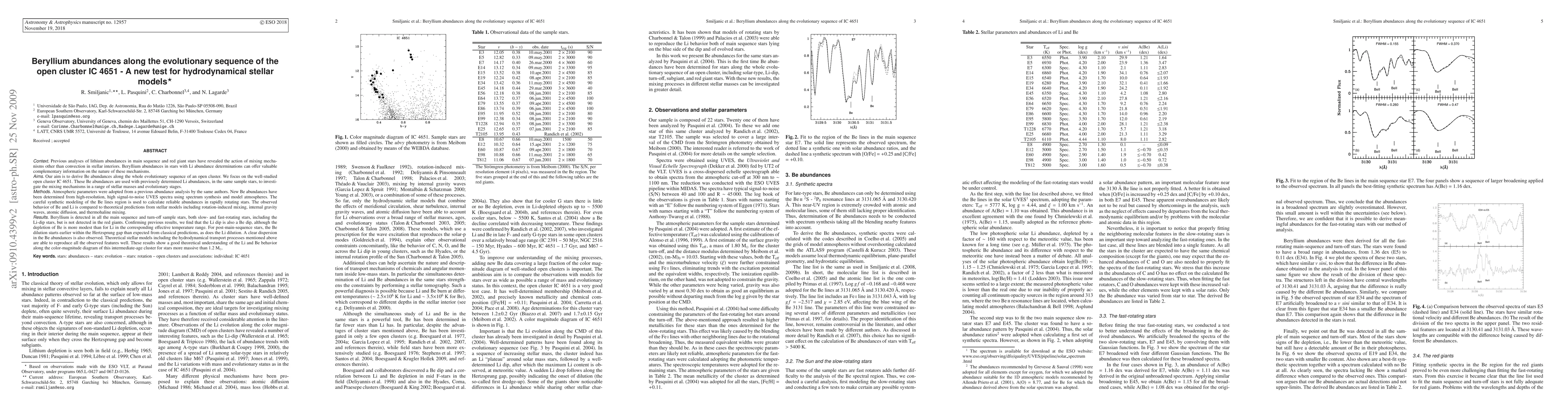 This study derives beryllium abundances in the open cluster IC 4651 to investigate mixing mechanisms in stellar interiors, comparing the observed behavior of Be and Li with theoretical predictions. The findings confirm a Be dip similar to the Li dip, with Be dilution starting earlier than expected, and suggest that hydrodynamical transport processes can reproduce these observations.