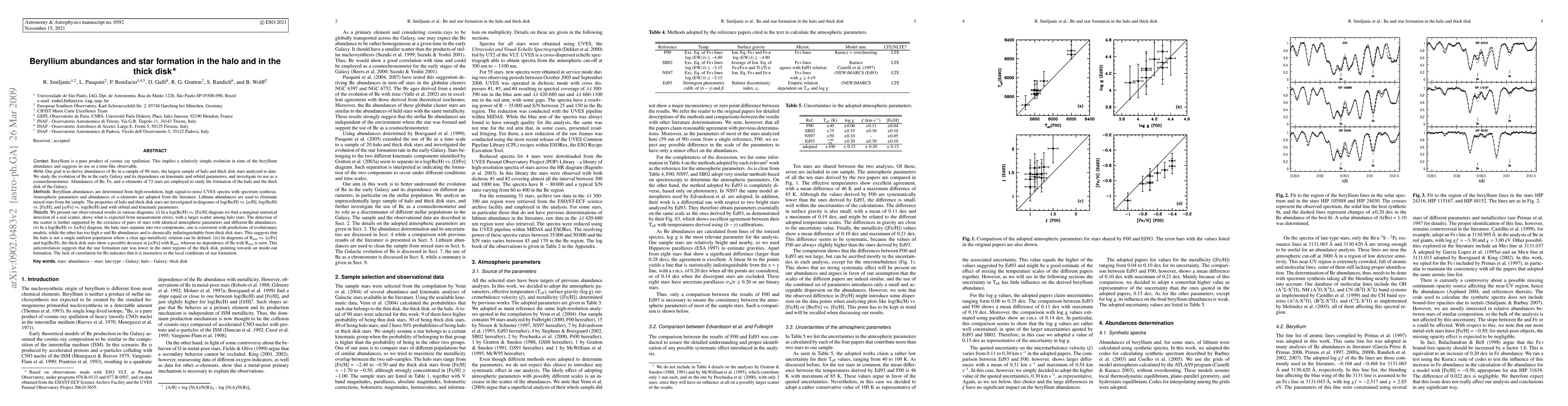 This paper investigates beryllium abundances in the Milky Way's halo and thick disk, using high-resolution spectra to explore their evolution and star formation history. It finds significant scatter in beryllium abundances among halo stars, suggesting the halo is not a uniform population, and indicates an inside-out formation of the thick disk with lower star formation rates in outer regions.