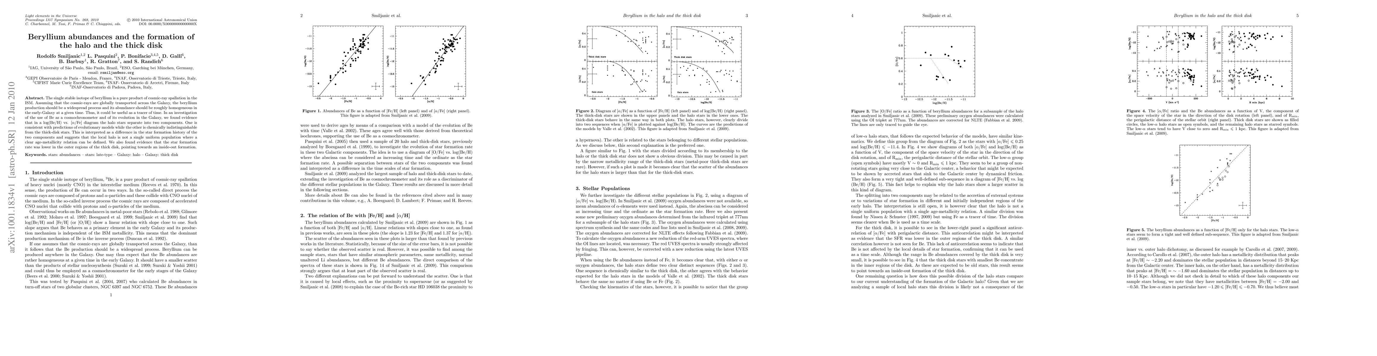 This paper investigates beryllium as a galactic tracer, finding that halo stars split into two components differing in star formation history, challenging the notion of a uniform local halo. Additionally, evidence suggests an inside-out formation for the thick disk with a lower star formation rate in outer regions.