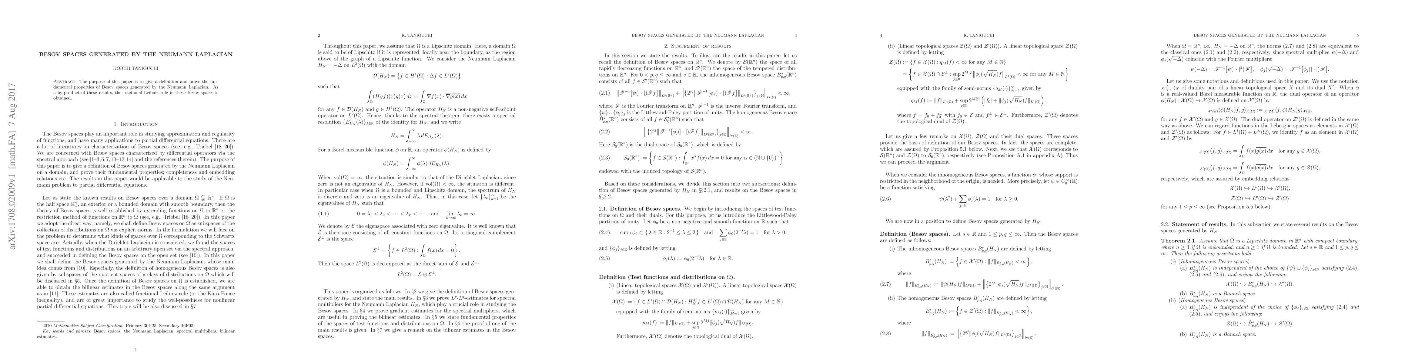 Summary: This paper defines Besov spaces generated by the Neumann Laplacian and proves their fundamental properties. Additionally, it derives the fractional Leibniz rule within these spaces.