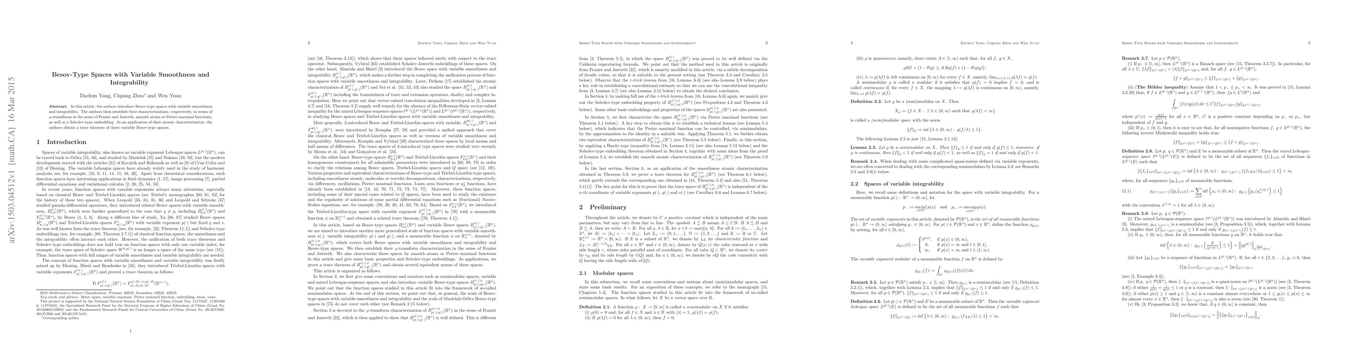 Researchers introduce Besov-type spaces with variable smoothness and integrability, establishing characterizations through various transforms and demonstrating an application of a trace theorem.