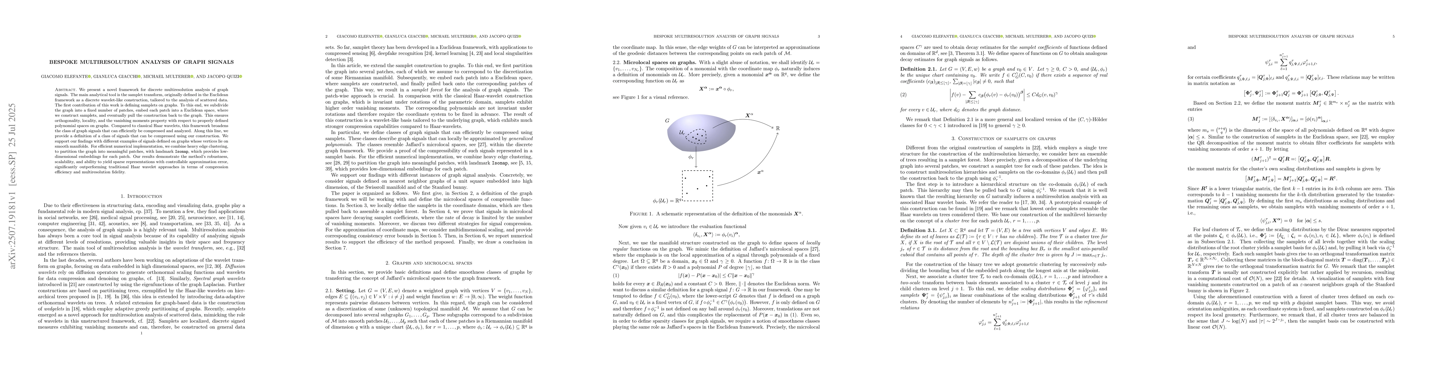 We present a novel framework for discrete multiresolution analysis of graph signals. The main analytical tool is the samplet transform, originally defined in the Euclidean framework as a discrete wavelet-like construction, tailored to the analysis of scattered data. The first contribution of this work is defining samplets on graphs. To this end, we subdivide the graph into a fixed number of patches, embed each patch into a Euclidean space, where we construct samplets, and eventually pull the construction back to the graph. This ensures orthogonality, locality, and the vanishing moments property with respect to properly defined polynomial spaces on graphs. Compared to classical Haar wavelets, this framework broadens the class of graph signals that can efficiently be compressed and analyzed. Along this line, we provide a definition of a class of signals that can be compressed using our construction. We support our findings with different examples of signals defined on graphs whose vertices lie on smooth manifolds. For efficient numerical implementation, we combine heavy edge clustering, to partition the graph into meaningful patches, with landmark \texttt{Isomap}, which provides low-dimensional embeddings for each patch. Our results demonstrate the method's robustness, scalability, and ability to yield sparse representations with controllable approximation error, significantly outperforming traditional Haar wavelet approaches in terms of compression efficiency and multiresolution fidelity.