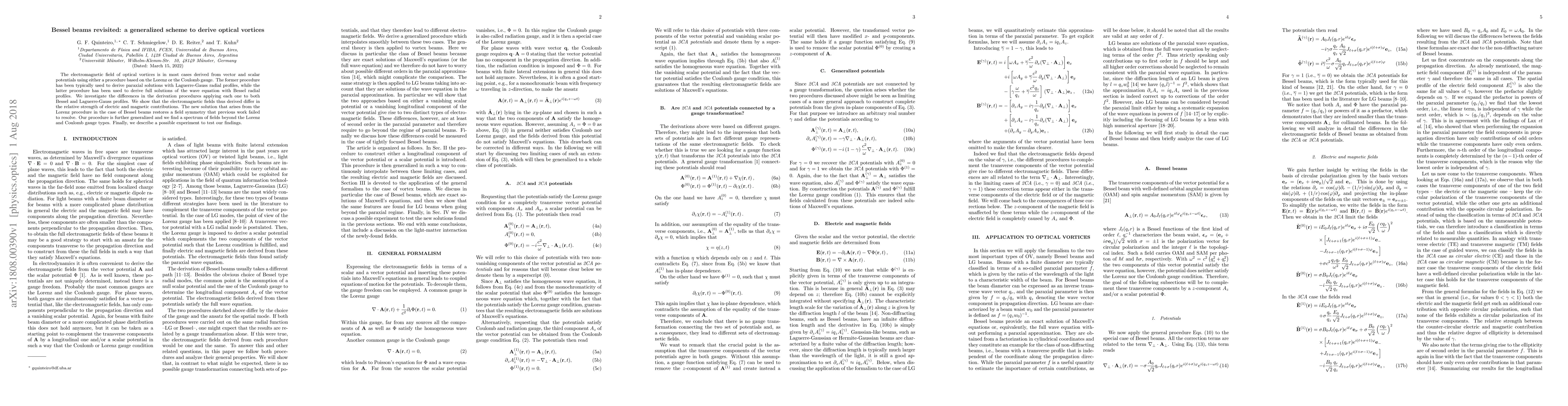 The electromagnetic field of optical vortices is in most cases derived from vector and scalar potentials using either a procedure based on the Lorenz or the Coulomb gauge. The former procedure has been typically used to derive paraxial solutions with Laguerre-Gauss radial profiles, while the latter procedure has been used to derive full solutions of the wave equation with Bessel radial profiles. We investigate the differences in the derivation procedures applying each one to both Bessel and Laguerre-Gauss profiles. We show that the electromagnetic fields thus derived differ in the relative strength of electric and magnetic contributions. The new solution that arises from the Lorenz procedure in the case of Bessel beams restores a field symmetry that previous work failed to resolve. Our procedure is further generalized and we find a spectrum of fields beyond the Lorenz and Coulomb gauge types. Finally, we describe a possible experiment to test our findings.