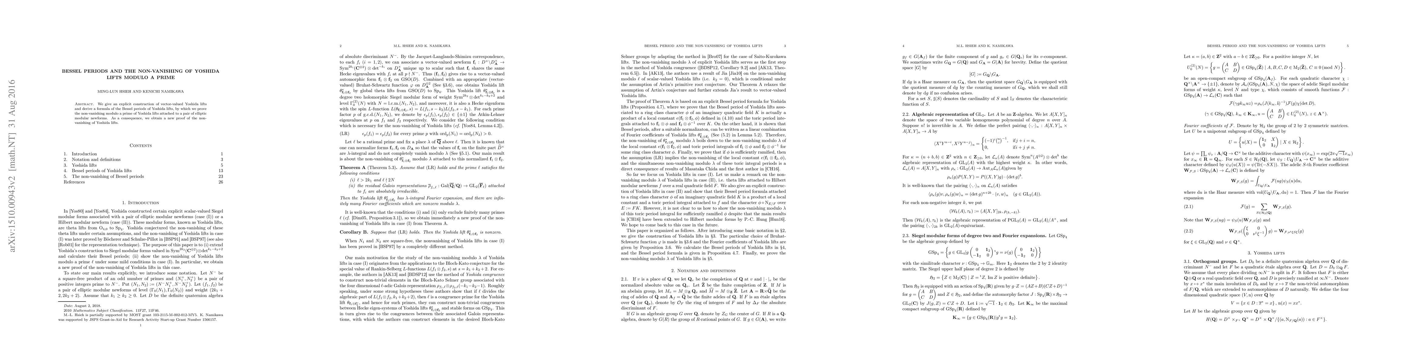 This paper constructs vector-valued Yoshida lifts and derives a formula for their Bessel periods, proving the non-vanishing of these lifts modulo a prime for elliptic modular newforms, thus providing a new proof for the non-vanishing of Yoshida lifts.