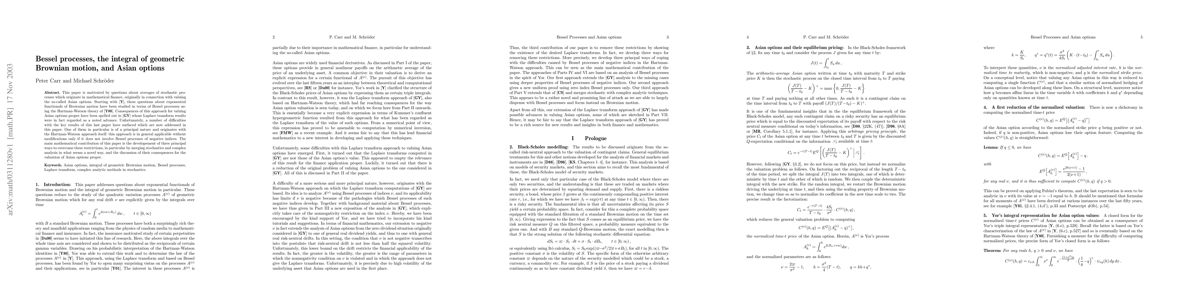 This paper is motivated by questions about averages of stochastic processes which originate in mathematical finance, originally in connection with valuing the so-called Asian options. Starting with research of Yor's in 1992, these questions about exponential functionals of Brownian motion have been studied in terms of Bessel processes using Yor's 1980 Hartman-Watson theory. Consequences of this approach for valuing Asian options proper have been spelled out by Geman and Yor in 1993 whose Laplace transform results were in fact regarded as a noted advance. Unfortunately, a number of difficulties with the key results of this last contribution have surfaced which are now addressed in this paper. One of them in particular is of a principal nature and originates with the Hartman-Watson approach itself: this approach is in general applicable without modifications only if it does not involve Bessel processes of negative indices. The main mathematical contribution of this paper is the developement of three principal ways to overcome these restrictions, in particular by merging stochastics and complex analysis in what seems a novel way, and the discussion of their consequences for the valuation of Asian options proper.