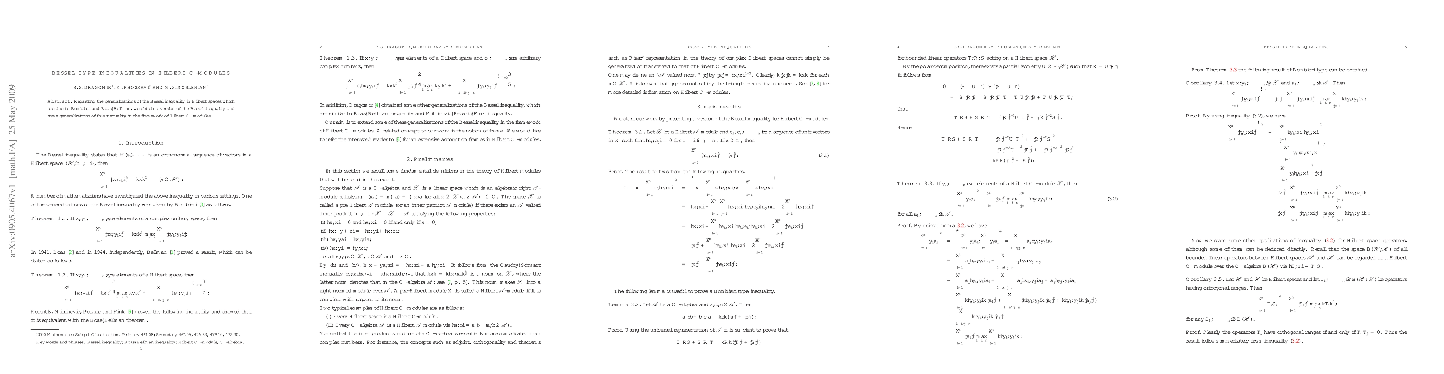 Summary: This paper generalizes the Bessel inequality from Hilbert spaces to Hilbert $C^*$-modules, providing a version of the inequality and exploring its extensions within this advanced mathematical framework.