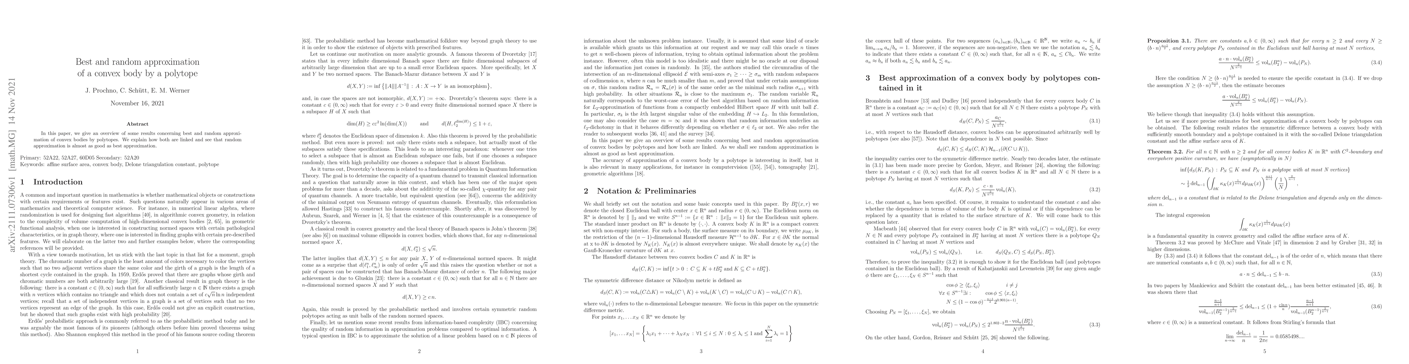 In this paper, we give an overview of some results concerning best and random approximation of convex bodies by polytopes. We explain how both are linked and see that random approximation is almost as good as best approximation.