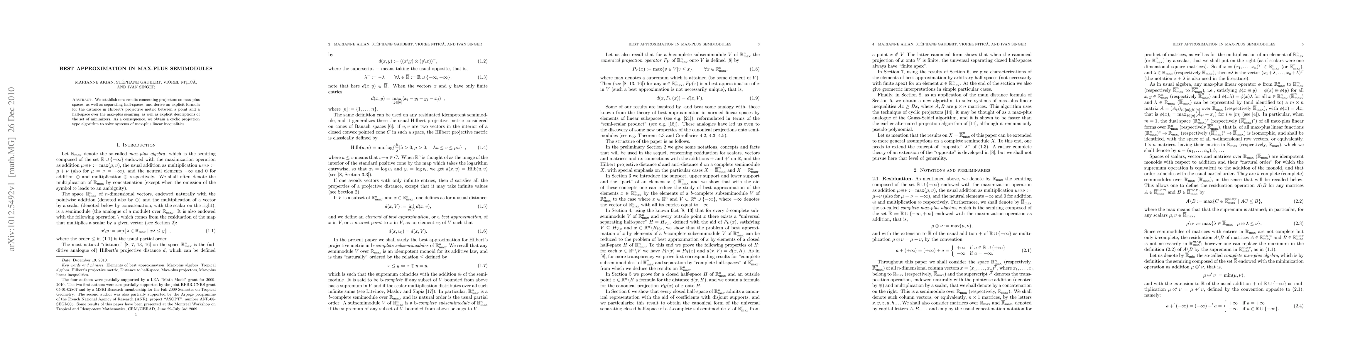 This paper presents new results on projectors in max-plus semimodules, including explicit formulas for distances in Hilbert's projective metric and descriptions of minimizers, leading to a cyclic projection algorithm for solving max-plus linear inequalities.