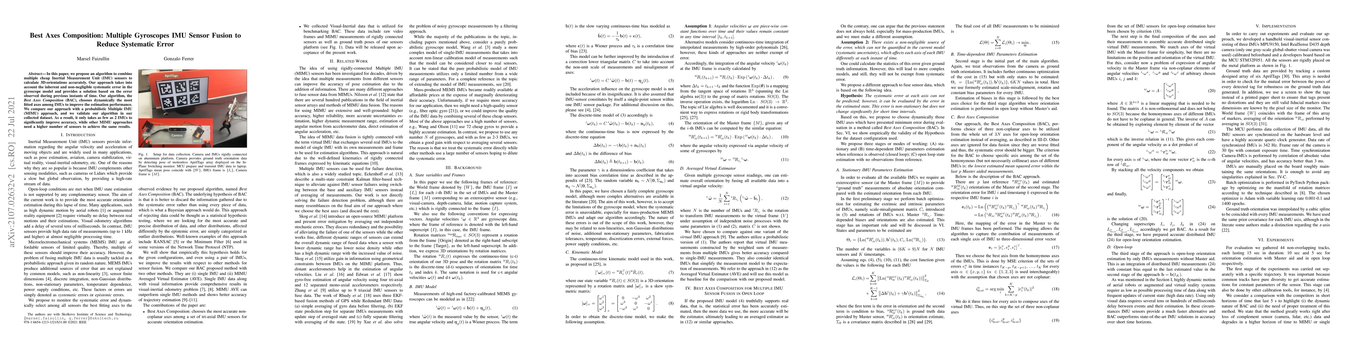 In this paper, we propose an algorithm to combine multiple cheap Inertial Measurement Unit (IMU) sensors to calculate 3D-orientations accurately. Our approach takes into account the inherent and non-negligible systematic error in the gyroscope model and provides a solution based on the error observed during previous instants of time. Our algorithm, the Best Axes Composition (BAC), chooses dynamically the most fitted axes among IMUs to improve the estimation performance. We compare our approach with a probabilistic Multiple IMU (MIMU) approach, and we validate our algorithm in our collected dataset. As a result, it only takes as few as 2 IMUs to significantly improve accuracy, while other MIMU approaches need a higher number of sensors to achieve the same results.