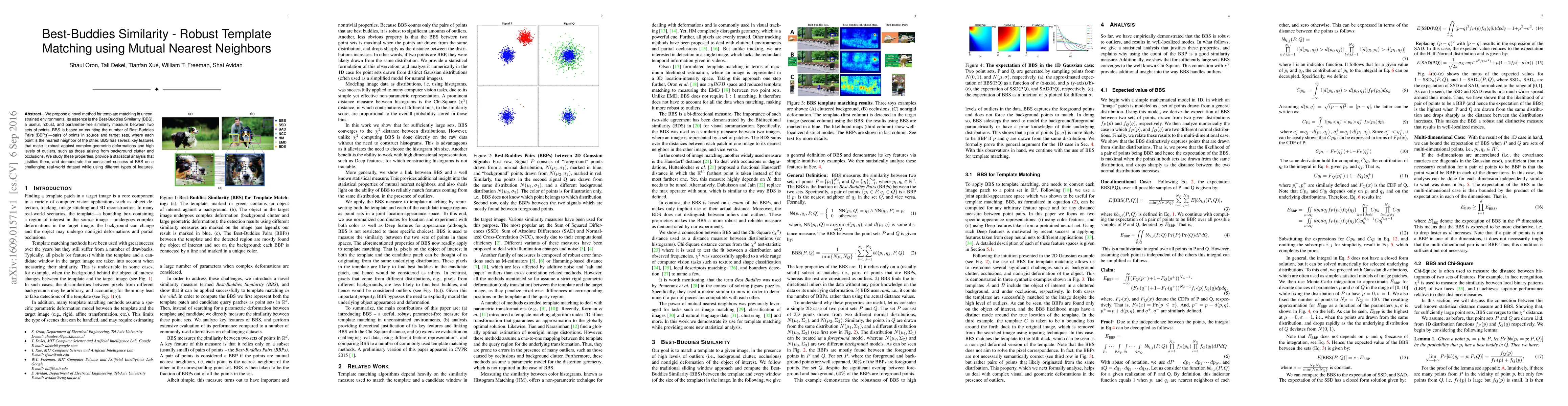 A new method for template matching uses Best-Buddies Similarity, a robust measure that counts pairs of nearest neighbors between source and target sets, to withstand complex deformations and high levels of outliers.
