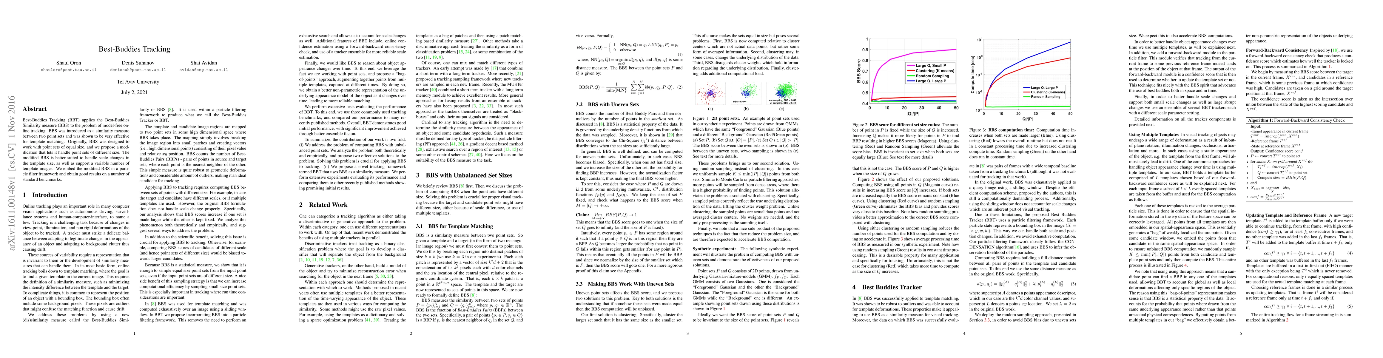 Researchers modified Best-Buddies Similarity to handle point sets of different sizes, improving its performance for online tracking tasks. The new method, embedded in a particle filter framework, showed good results on standard benchmarks.