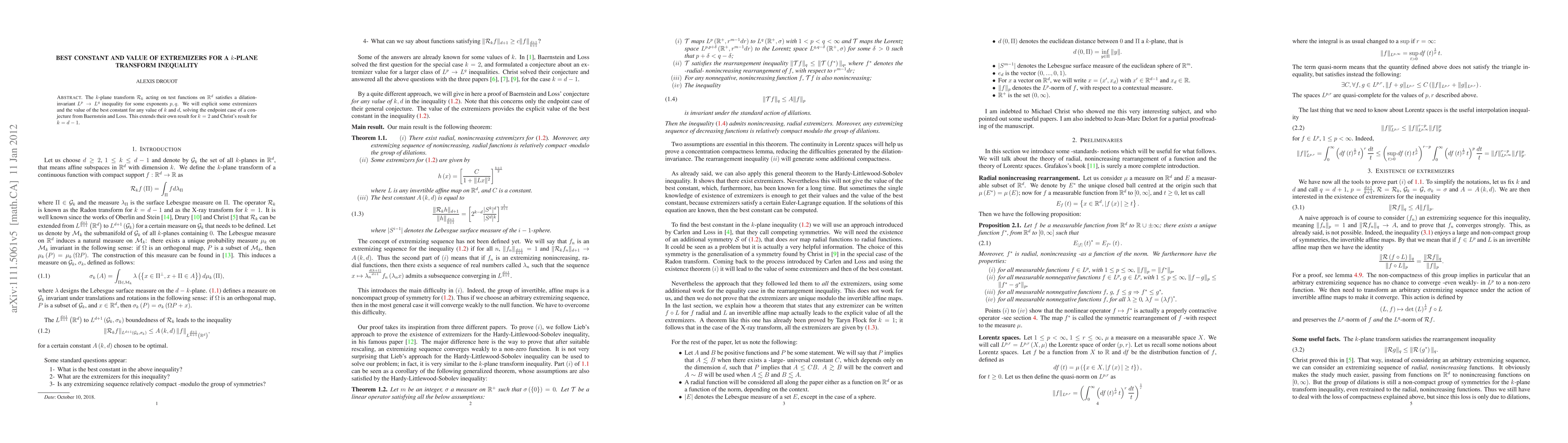 The k-plane transform acting on test functions on R^d satisfies a dilation-invariant L^p to L^q inequality for some exponents p,q. We will explicit some extremizers and the value of the best constant for any value of k and d, solving the limit case of a 1997 conjecture from Baernstein and Loss. This extends their own result for k=2 and Christ's result for k=d-1.