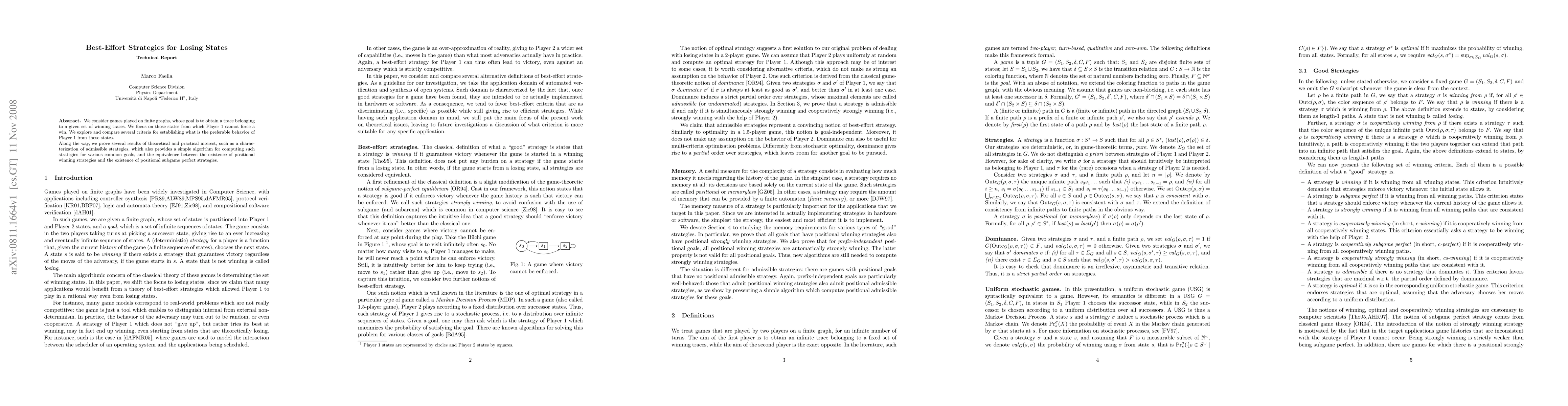 We consider games played on finite graphs, whose goal is to obtain a trace belonging to a given set of winning traces. We focus on those states from which Player 1 cannot force a win. We explore and compare several criteria for establishing what is the preferable behavior of Player 1 from those states. Along the way, we prove several results of theoretical and practical interest, such as a characterization of admissible strategies, which also provides a simple algorithm for computing such strategies for various common goals, and the equivalence between the existence of positional winning strategies and the existence of positional subgame perfect strategies.