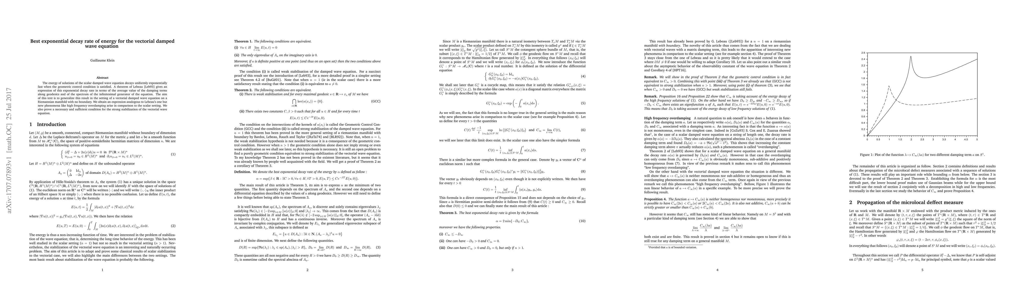 This paper generalizes the exponential decay rate of energy for scalar damped wave equations to vectorial damped wave equations on a Riemannian manifold. It introduces a new expression for the decay rate, accounting for high frequency overdamping, and provides a necessary and sufficient condition for strong stabilization.
