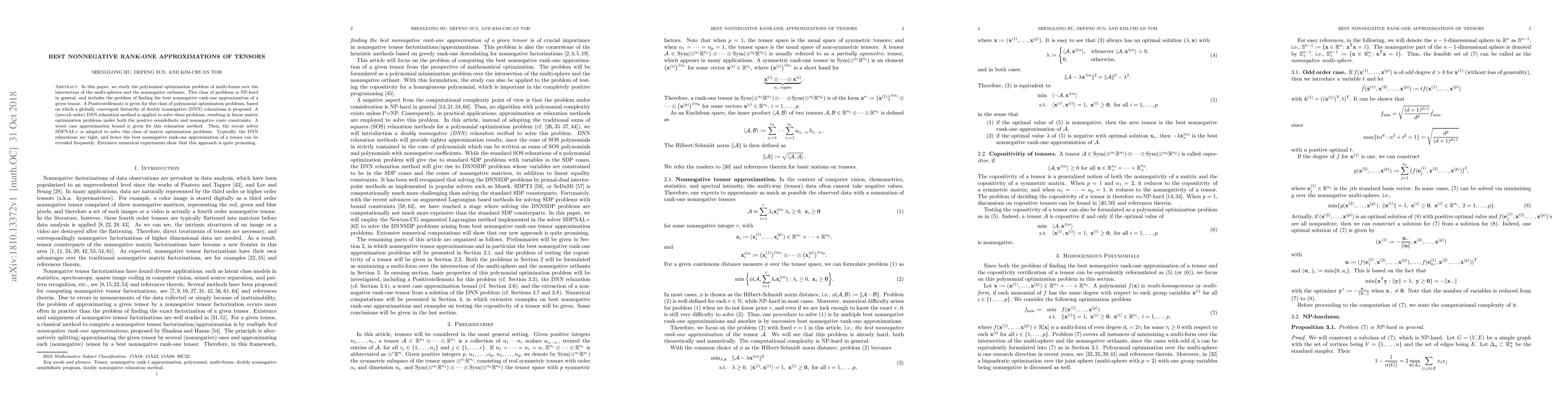 This paper proposes a globally convergent hierarchy of doubly nonnegative relaxations for finding the best nonnegative rank-one approximation of tensors, leveraging a Positivstellensatz and employing SDPNAL+ solver for optimization. Numerical experiments demonstrate the effectiveness of the proposed method.