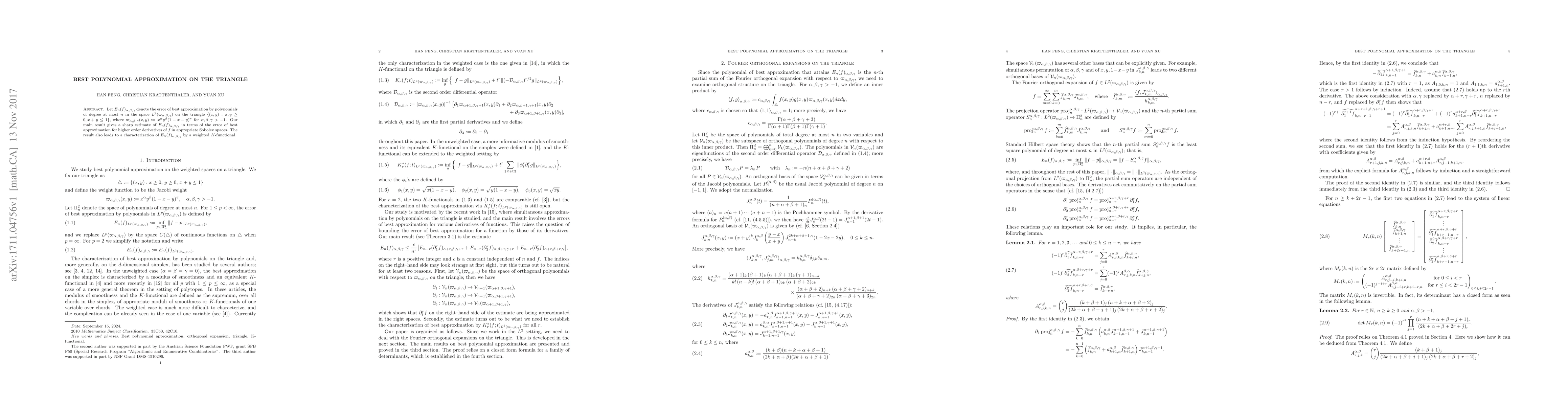 This research paper presents a sharp estimate for the error of best polynomial approximation in the $L^2$ space on a triangle, expressed in terms of higher-order derivative errors in Sobolev spaces. It also characterizes the error via a weighted K-functional, providing insights into approximation theory on triangular domains.