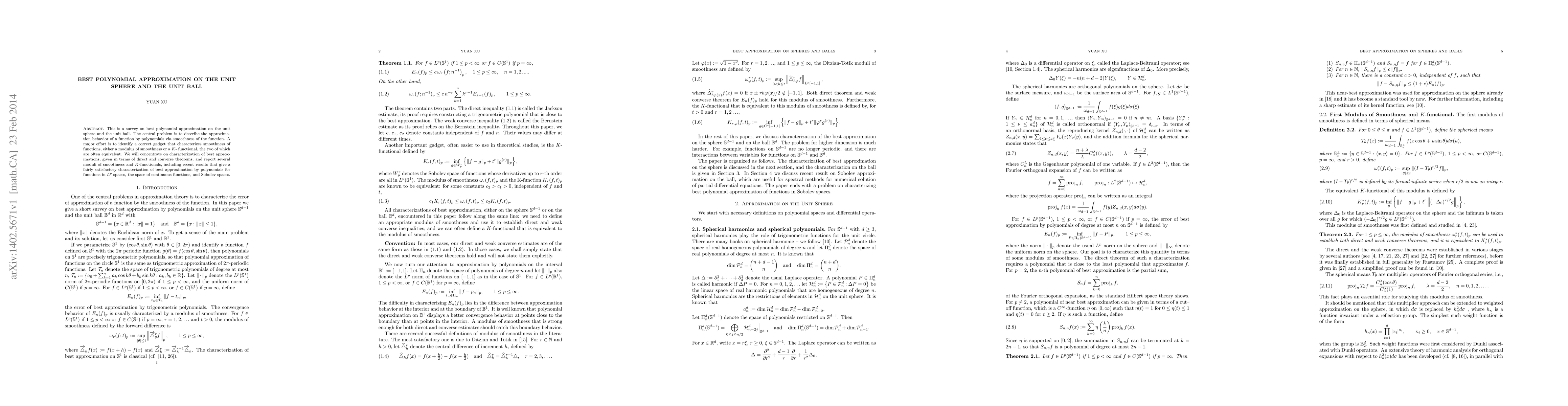 This is a survey on best polynomial approximation on the unit sphere and the unit ball. The central problem is to describe the approximation behavior of a function by polynomials via smoothness of the function. A major effort is to identify a correct gadget that characterizes smoothness of functions, either a modulus of smoothness or a $K$- functional, the two of which are often equivalent. We will concentrate on characterization of best approximations, given in terms of direct and converse theorems, and report several moduli of smoothness and $K$-functionals, including recent results that give a fairly satisfactory characterization of best approximation by polynomials for functions in $L^p$ spaces, the space of continuous functions, and Sobolev spaces.