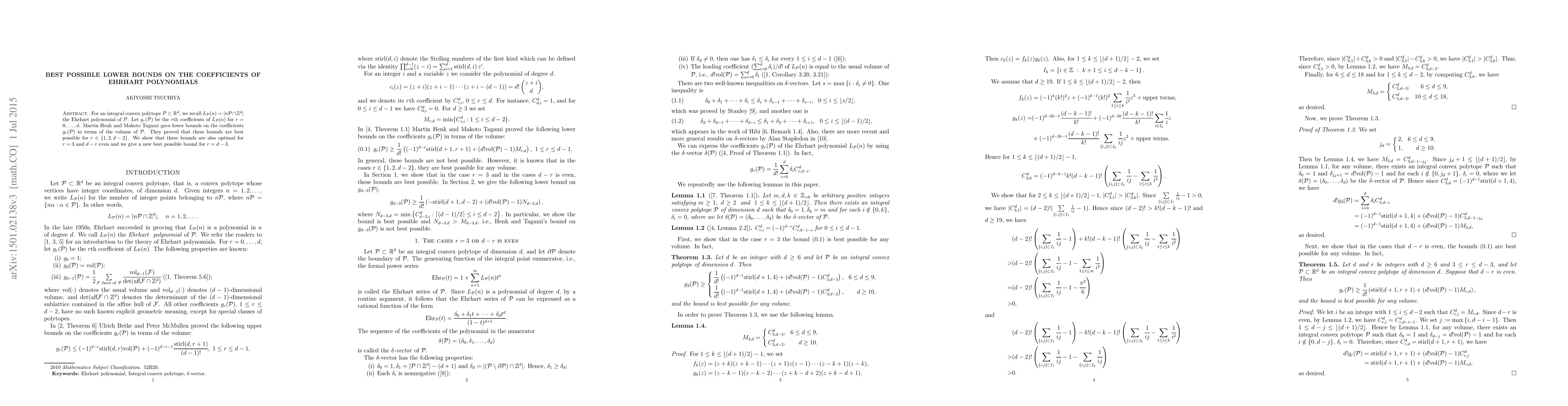 This paper refines lower bounds on Ehrhart polynomial coefficients for integral convex polytopes, proving optimality for some cases and improving the bound for others.