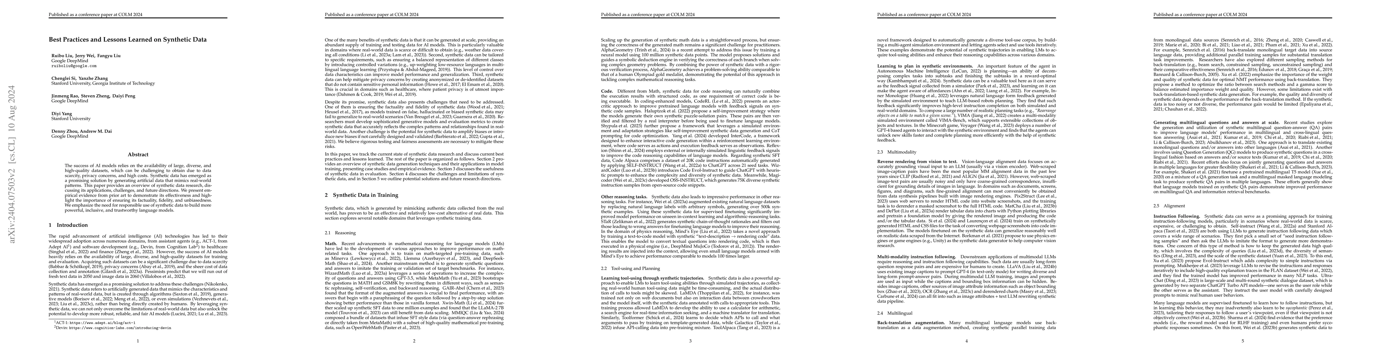 The success of AI models relies on the availability of large, diverse, and high-quality datasets, which can be challenging to obtain due to data scarcity, privacy concerns, and high costs. Synthetic data has emerged as a promising solution by generating artificial data that mimics real-world patterns. This paper provides an overview of synthetic data research, discussing its applications, challenges, and future directions. We present empirical evidence from prior art to demonstrate its effectiveness and highlight the importance of ensuring its factuality, fidelity, and unbiasedness. We emphasize the need for responsible use of synthetic data to build more powerful, inclusive, and trustworthy language models.