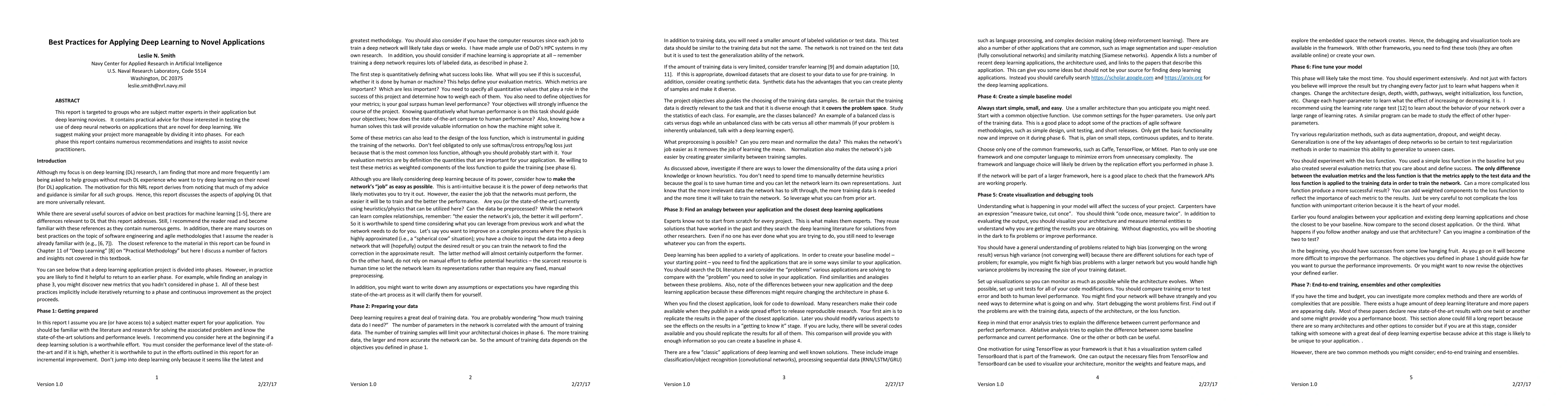 This report offers practical advice for deep learning novices exploring novel applications, recommending a phased approach to manage projects and providing insights for each phase. It aims to assist subject matter experts in effectively applying deep neural networks to new domains.