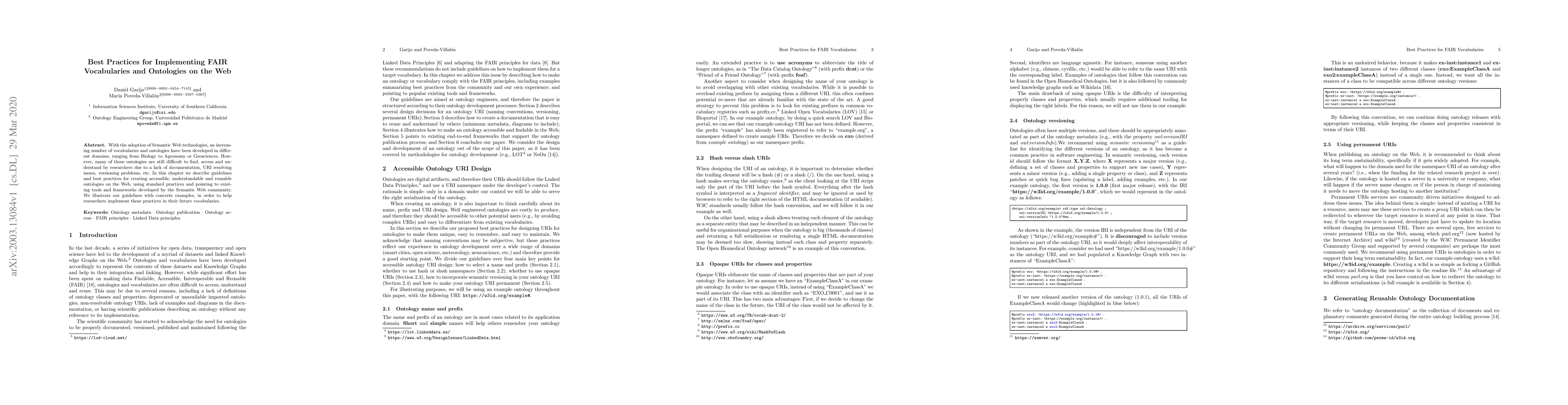With the adoption of Semantic Web technologies, an increasing number of vocabularies and ontologies have been developed in different domains, ranging from Biology to Agronomy or Geosciences. However, many of these ontologies are still difficult to find, access and understand by researchers due to a lack of documentation, URI resolving issues, versioning problems, etc. In this chapter we describe guidelines and best practices for creating accessible, understandable and reusable ontologies on the Web, using standard practices and pointing to existing tools and frameworks developed by the Semantic Web community. We illustrate our guidelines with concrete examples, in order to help researchers implement these practices in their future vocabularies.