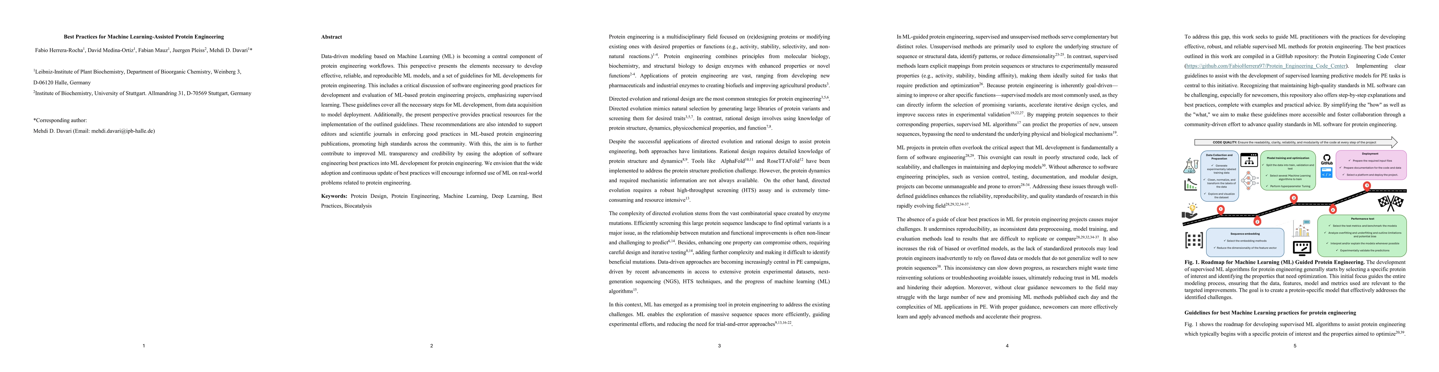 Data-driven modeling based on Machine Learning (ML) is becoming a central component of protein engineering workflows. This perspective presents the elements necessary to develop effective, reliable, and reproducible ML models, and a set of guidelines for ML developments for protein engineering. This includes a critical discussion of software engineering good practices for development and evaluation of ML-based protein engineering projects, emphasizing supervised learning. These guidelines cover all the necessary steps for ML development, from data acquisition to model deployment. Additionally, the present perspective provides practical resources for the implementation of the outlined guidelines. These recommendations are also intended to support editors and scientific journals in enforcing good practices in ML-based protein engineering publications, promoting high standards across the community. With this, the aim is to further contribute to improved ML transparency and credibility by easing the adoption of software engineering best practices into ML development for protein engineering. We envision that the wide adoption and continuous update of best practices will encourage informed use of ML on real-world problems related to protein engineering.