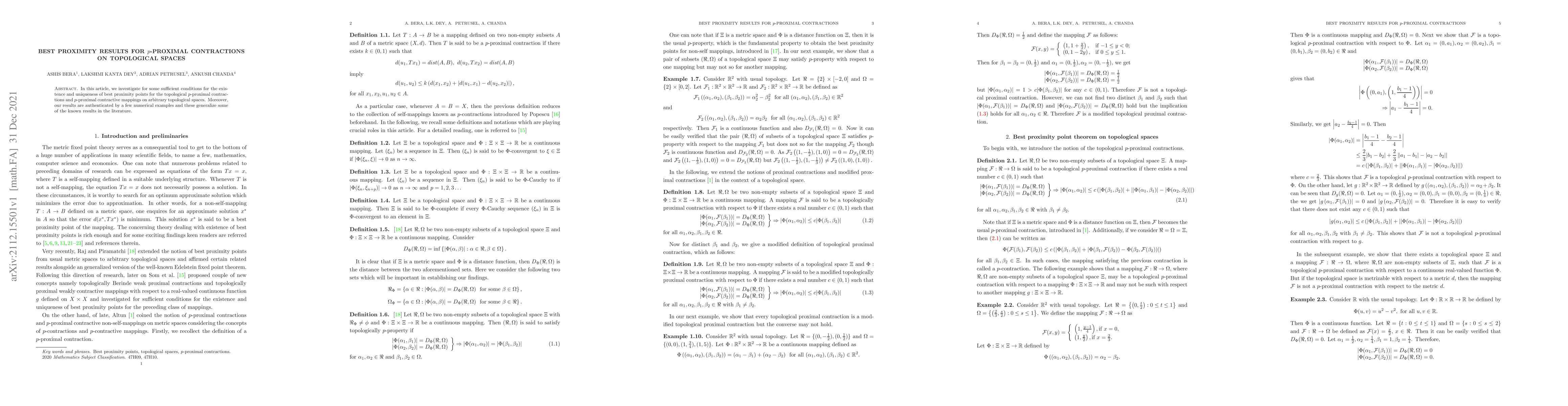 Summary: This paper explores sufficient conditions for the existence and uniqueness of best proximity points for $p$-proximal contractions and mappings on topological spaces, with numerical examples validating the findings and generalizing existing literature.