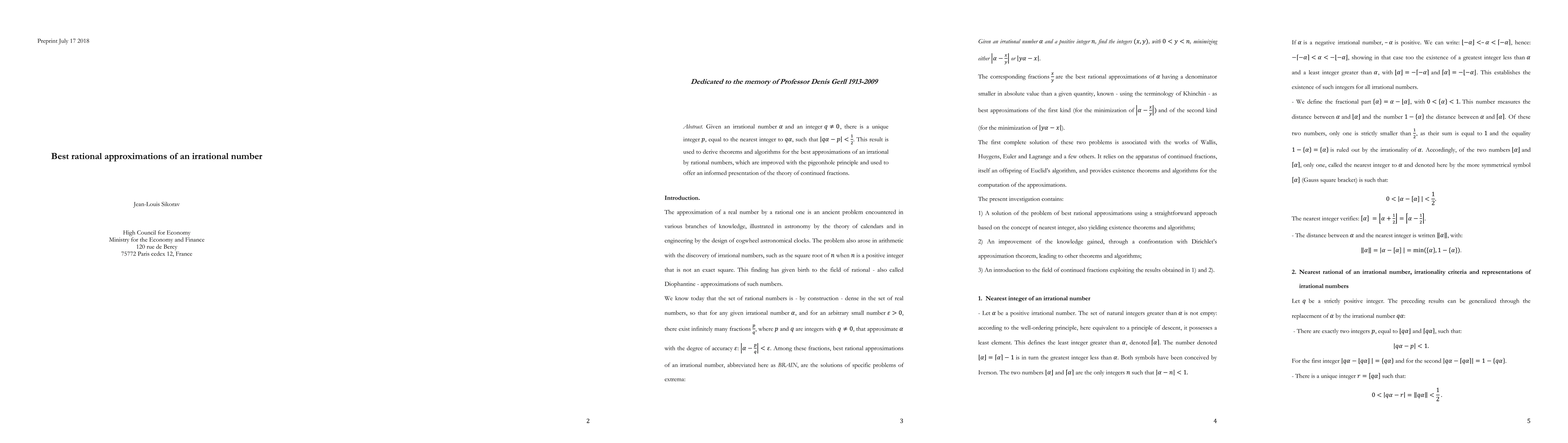 This paper develops theorems and algorithms for finding the best rational approximations of an irrational number, utilizing the concept of nearest integers and enhancing them with the pigeonhole principle, while also providing insights into the theory of continued fractions.