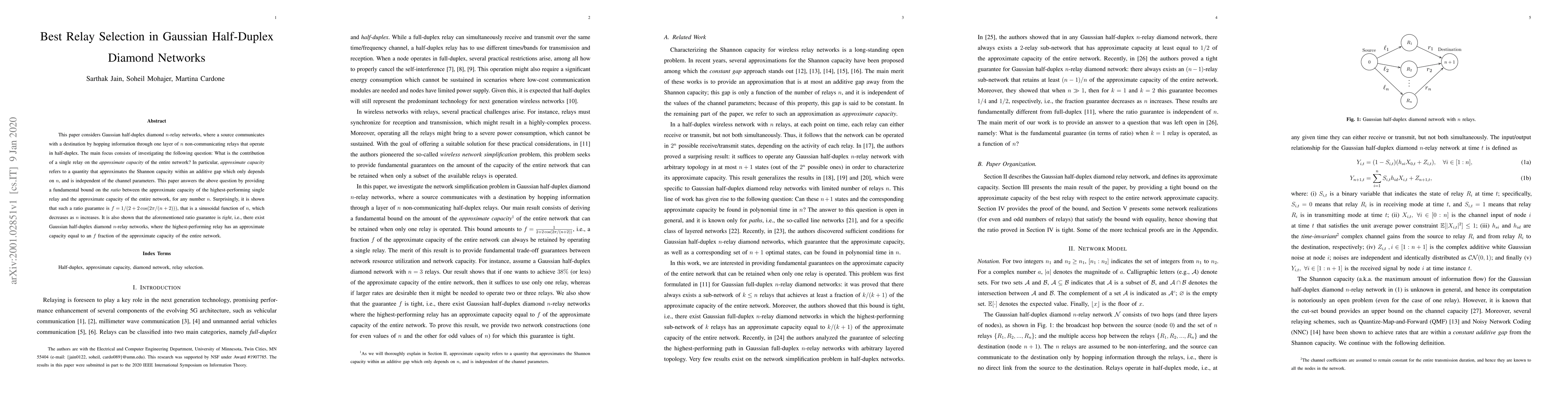 This paper considers Gaussian half-duplex diamond $n$-relay networks, where a source communicates with a destination by hopping information through one layer of $n$ non-communicating relays that operate in half-duplex. The main focus consists of investigating the following question: What is the contribution of a single relay on the approximate capacity of the entire network? In particular, approximate capacity refers to a quantity that approximates the Shannon capacity within an additive gap which only depends on $n$, and is independent of the channel parameters. This paper answers the above question by providing a fundamental bound on the ratio between the approximate capacity of the highest-performing single relay and the approximate capacity of the entire network, for any number $n$. Surprisingly, it is shown that such a ratio guarantee is $f = 1/(2+2\cos(2\pi/(n+2)))$, that is a sinusoidal function of $n$, which decreases as $n$ increases. It is also shown that the aforementioned ratio guarantee is tight, i.e., there exist Gaussian half-duplex diamond $n$-relay networks, where the highest-performing relay has an approximate capacity equal to an $f$ fraction of the approximate capacity of the entire network.