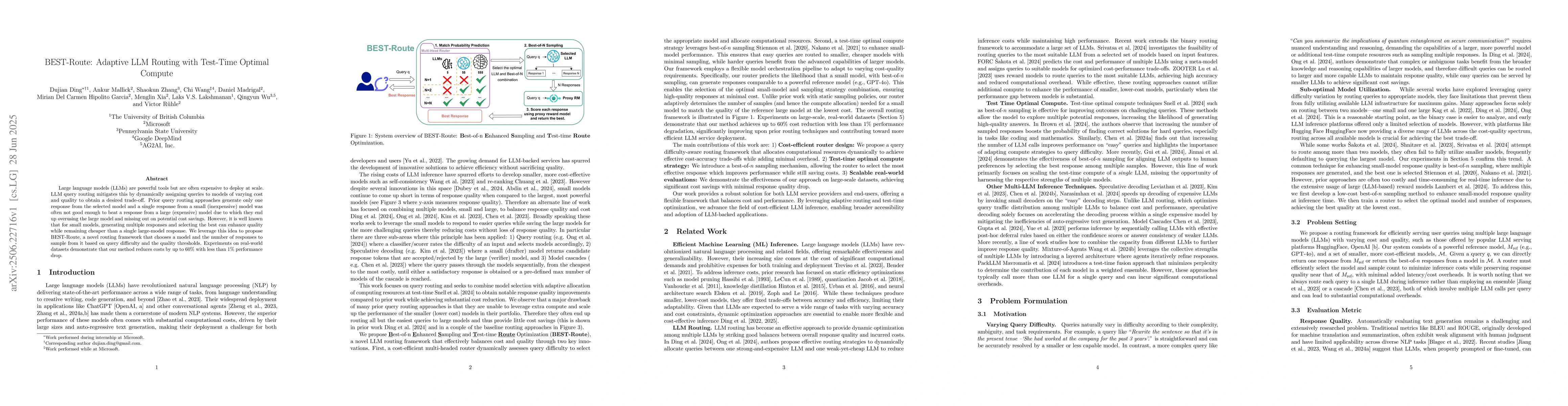 Large language models (LLMs) are powerful tools but are often expensive to deploy at scale. LLM query routing mitigates this by dynamically assigning queries to models of varying cost and quality to obtain a desired trade-off. Prior query routing approaches generate only one response from the selected model and a single response from a small (inexpensive) model was often not good enough to beat a response from a large (expensive) model due to which they end up overusing the large model and missing out on potential cost savings. However, it is well known that for small models, generating multiple responses and selecting the best can enhance quality while remaining cheaper than a single large-model response. We leverage this idea to propose BEST-Route, a novel routing framework that chooses a model and the number of responses to sample from it based on query difficulty and the quality thresholds. Experiments on real-world datasets demonstrate that our method reduces costs by up to 60% with less than 1% performance drop.